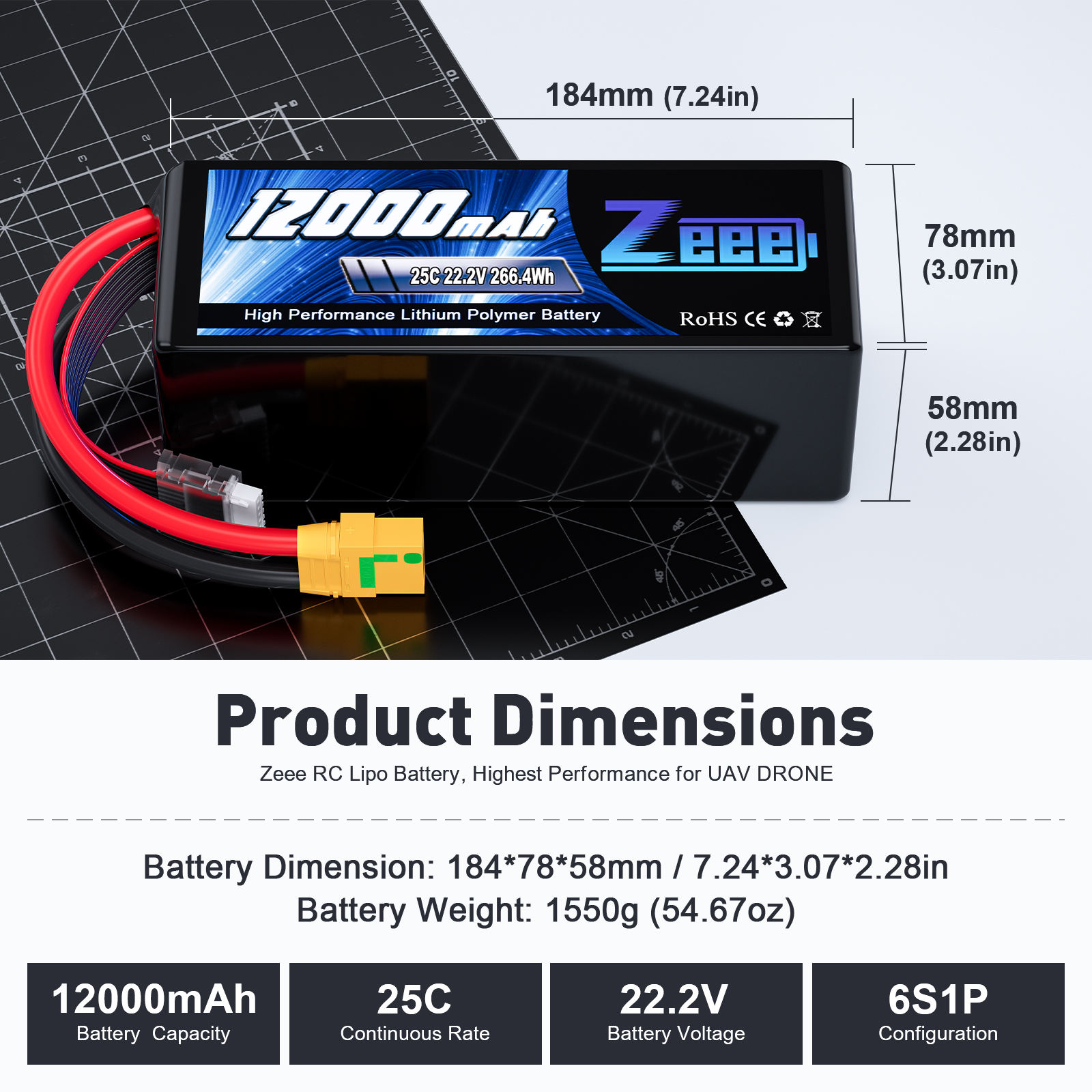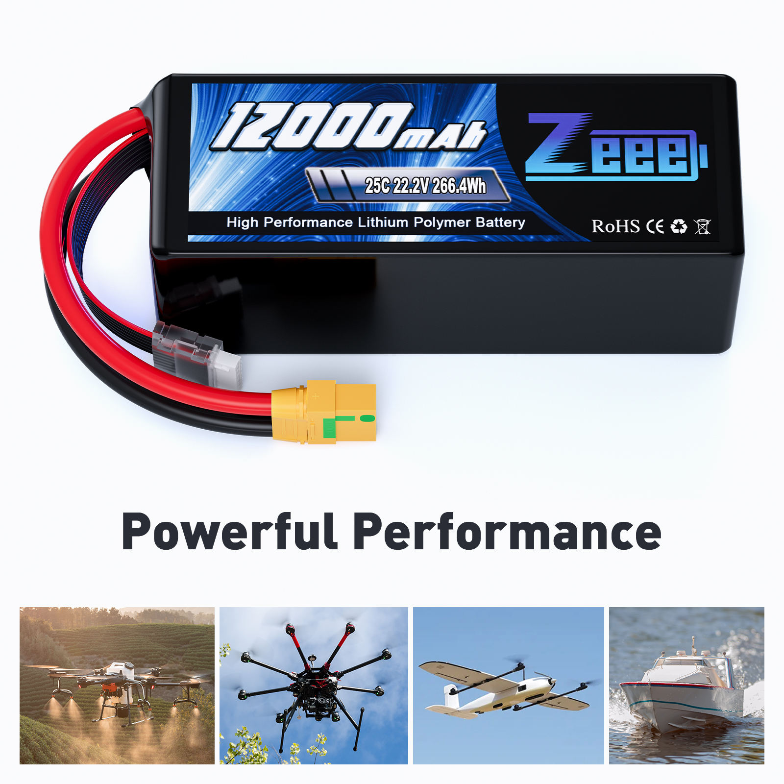 - 1 x Zeee 22.2V 25C 12000mAh lipo battery with XT90 plug